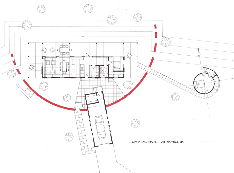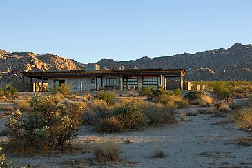 This high desert house adjacent to Joshua Tree National Park is located in an environment that not only presented challenges and opportunities totally dissimilar to those of a house design for Vermont, but the vast scale of the treeless and abstract western environment is something that I have always loved. The house has an extremely simple floor plan and shape that quietly takes its place in its immense surroundings. Although small in footprint, the house opens up to encompass the surroundings and feels much larger than its floor plan would suggest.