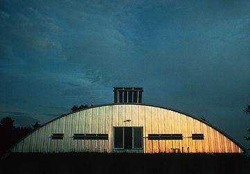 Sitting on the edge of a large hay meadow, the low earth sheltered north elevation gives little indication of the volume within the house. The low arching profile emerging from and connected to the landscape was inspired by an interest in iron age constructed earthen mounds in England and Wales. Galvanized steel siding reflects the setting sun and the agricultural buildings in the surrounding area.
