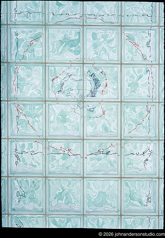 51" w x 72" h / graphite, colored pencil, water color paint, concrete dust