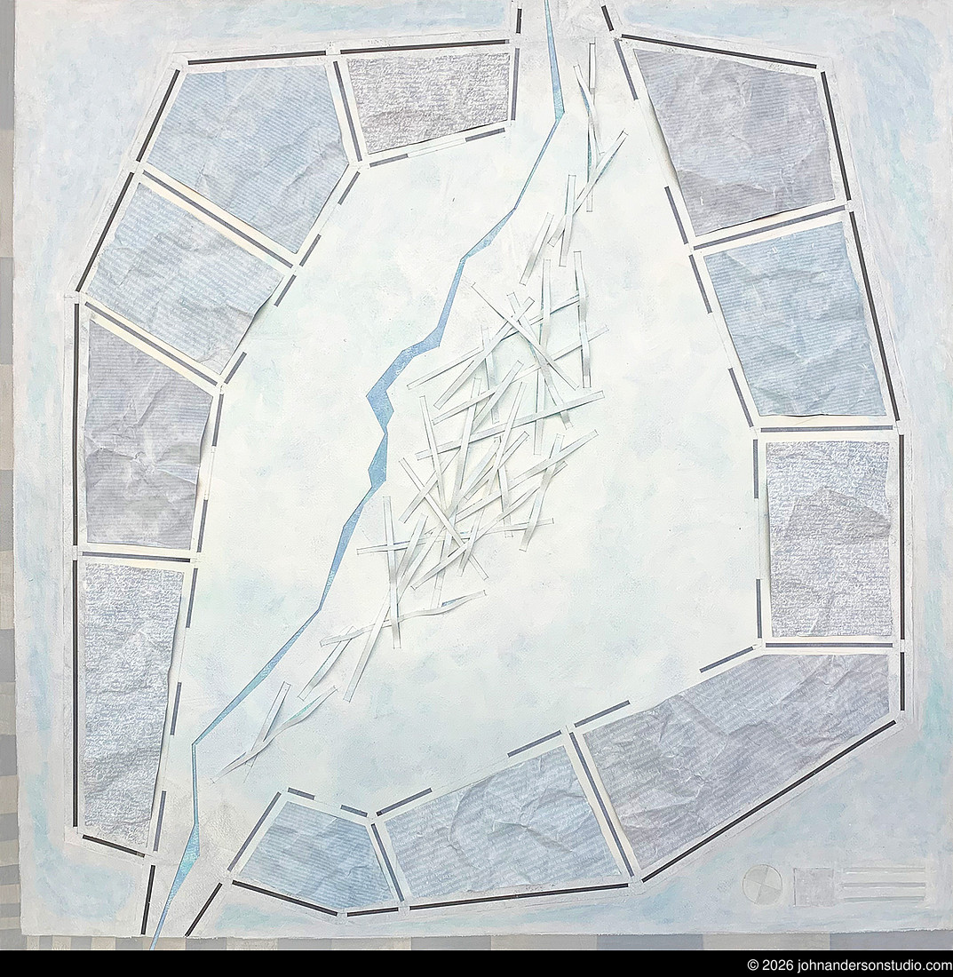36” x 36” Acrylic paint, inkjet prints, graphite, colored pencil on paper