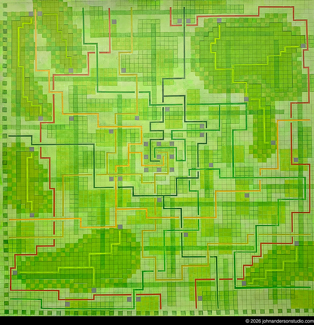 36” x 36” Acrylic paint, graphite, colored pencil on paper